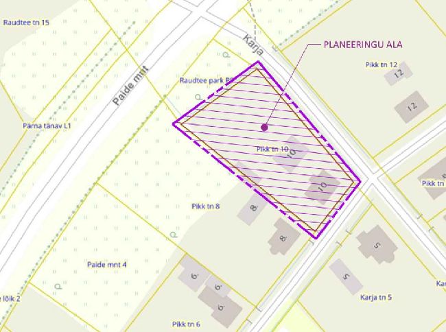 Planeeringuala suurus on 2089,0 m², maa sihtotstarve 100% elamumaa. Kinnistu asub Sindi linnas Paide maantee ja Pika tänava vahelisel alal Karja tänava ääres, külgnedes lõuna poolt Pikk tn 8 kinnistuga (74101:004:0020). Juurdepääs kruntidele planeeritakse Karja tn poolt.
